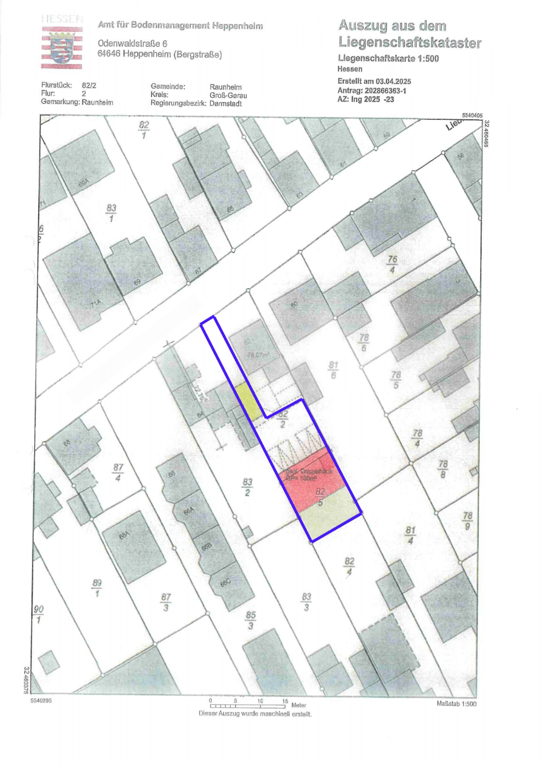 Der Bauplatz befindet sich im alten Ortskern von Raunheim, in Main-Nähe.